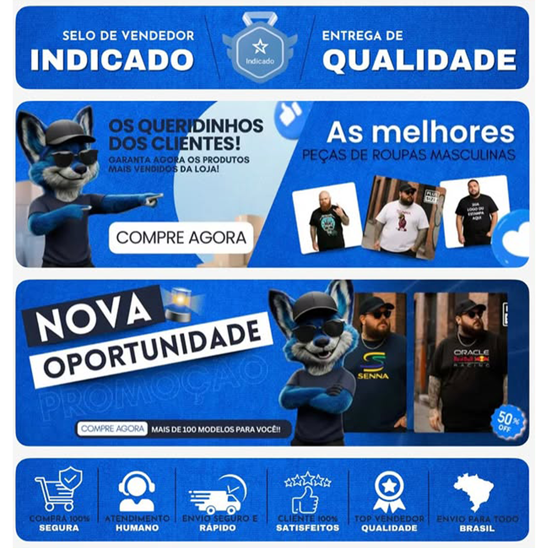 - Personalização visual completa para lojas em marketplaces, alinhando identidade, banners e layout para fortalecer sua marca e gerar confiança.